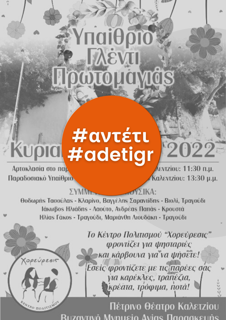 ΥΠΑΙΘΡΙΟ ΓΛΕΝΤΙ ΠΡΩΤΟΜΑΓΙΑΣ με το ΚΕΝΤΡΟ ΠΟΛΙΤΙΣΜΟΥ "ΧΟΡΕΥΡΕΣΙΣ"