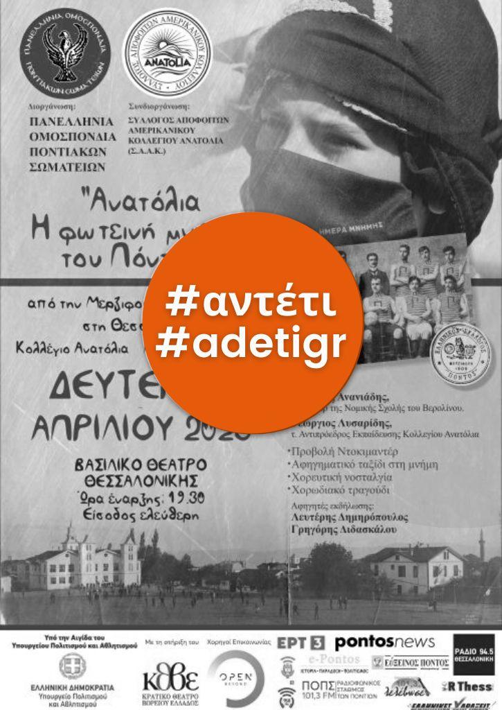 - Προβολή Ντοκιμαντέρ: «Κολλέγιο Ανατόλια – Η φωτεινή μνήμη του Πόντου».