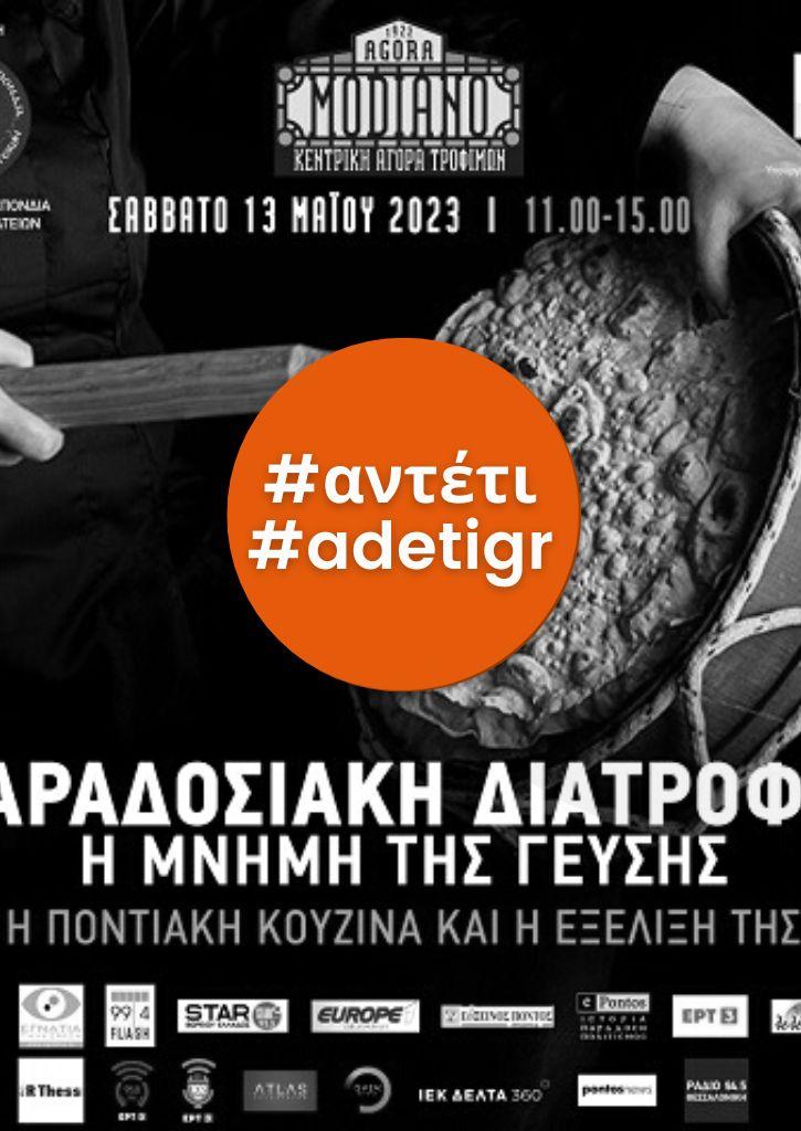 Η ποντιακή κουζίνα αναβιώνει στην Αγορά Μοδιάνο, με πρωτοβουλία της Πανελλήνιας Ομοσπονδιας Ποντιακών Σωματείων (ΠΟΠΣ), το Σάββατο 13 Μαΐου 2023, με τον γενικό τίτλο «Παραδοσιακή Διατροφή - Μνήμη της Γεύσης – Η Ποντιακή Κουζίνα και η Εξέλιξή της». Χορευτές, με ένα «Λάλεμαν ση στράταν», με τους ήχους της λύρας και τους χτύπους του νταουλιού.