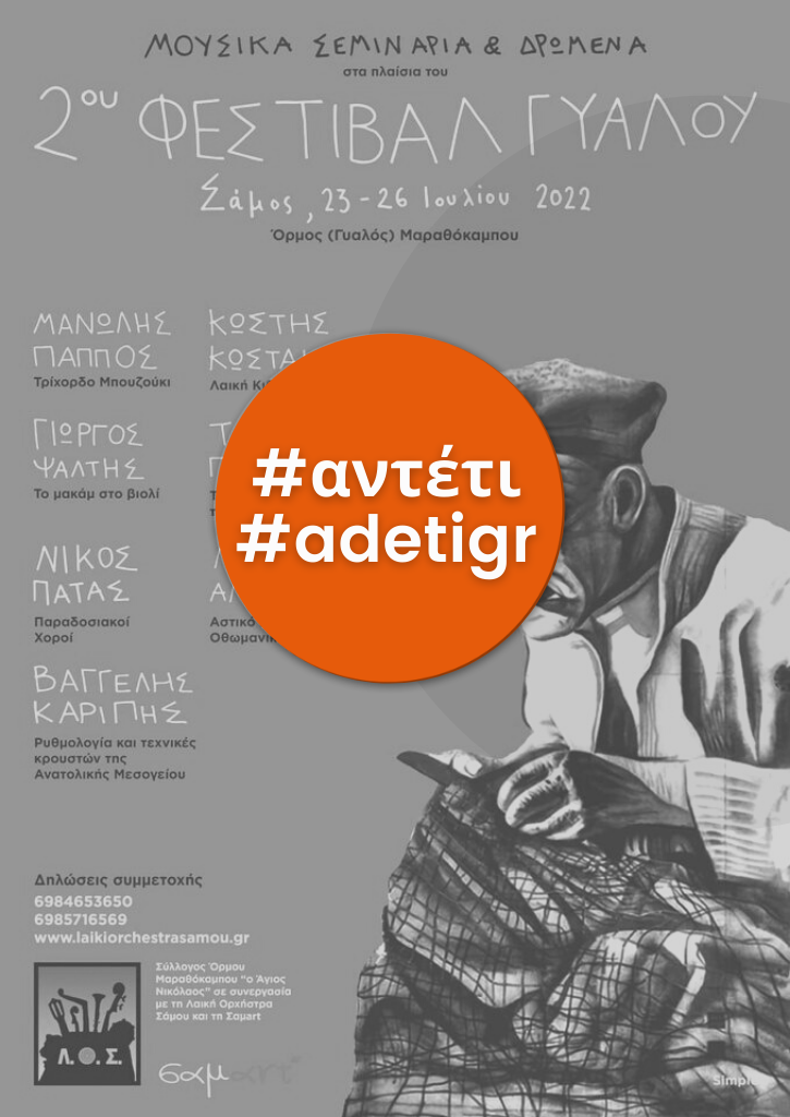 Ο Σύλλογος Όρμου Μαραθοκάμπου ''Ο Άγιος Νικόλαος'' σε συνεργασία με τη Λαϊκή ορχήστρα Σάμου και τη Σαμart οργανώνουν στα πλαίσια του 2ου Φεστιβάλ Γυαλού, μουσικά σεμινάρια και δρώμενα στη Σάμο 23 - 26 Ιουλίου.