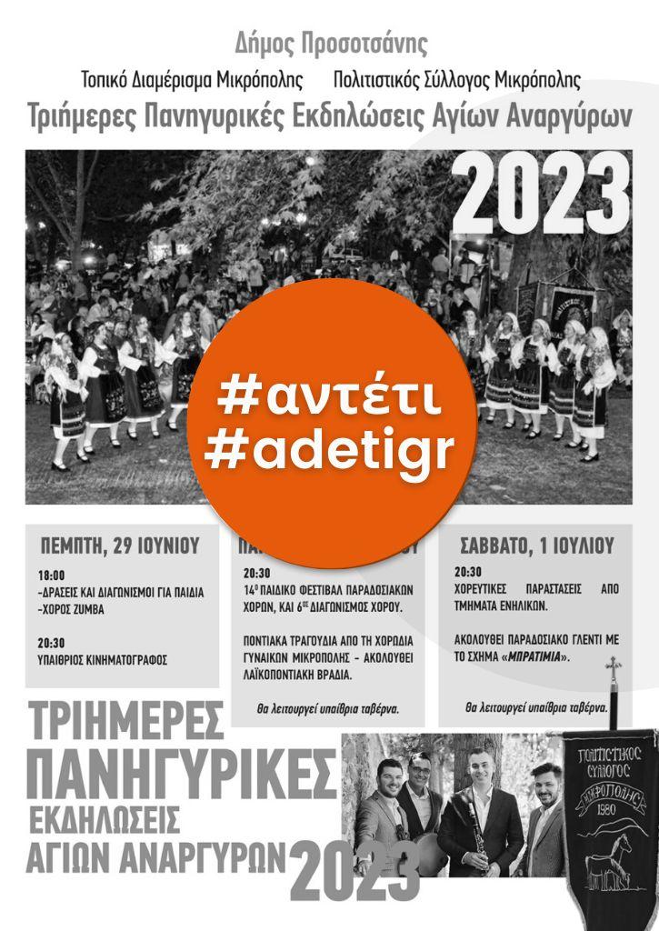 «ΤΡΙΗΜΕΡΕΣ ΠΑΝΗΓΥΡΙΚΕΣ ΕΚΔΗΛΩΣΕΙΣ ΑΓΙΩΝ ΑΝΑΡΓΥΡΩΝ» | ΠΟΛΙΤΙΣΤΙΚΟΣ ΣΥΛΛΟΓΟΣ ΜΙΚΡΟΠΟΛΗΣ| 29-30 Ιουνίου 2023 & 1 Ιουλίου 2023