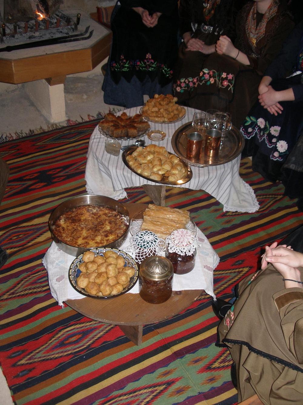 Η Οσσαία, όμως, νοικοκυρά δεν παρέλειπε να έχει στο τραπέζι τα χριστουγεννιάτικα γλυκά που έφτιαχνε η ίδια, τον μπακλαβά και το «σαραϊλιέ» (σαραγλί), φτιαγμένα με χειροποίητο φύλλο, καρύδια, σουσάμι και ζάχαρη, τα κατεξοχήν γλυκά των Χριστουγέννων που συμβόλιζαν τα σπάργανα του μικρού Χριστού.