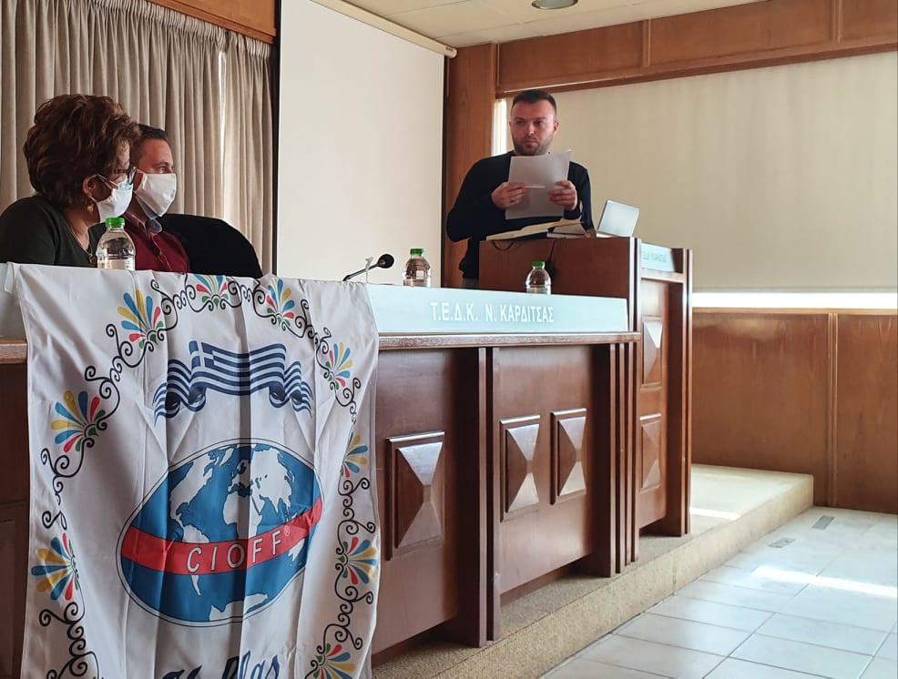 Στην Καρδίτσα πραγματοποιήθηκε το Σάββατο 27 Νοεμβρίου 2021 η Ετήσια Τακτική Γενική Συνέλευση του Ελληνικού Εθνικού Τμήματος του CIOFF®, υβριδικά (δια ζώσης και διαδικτυακά) και τηρώντας όλα τα προβλεπόμενα υγειονομικά πρωτόκολλα, με την συμμετοχή εκπροσώπων δεκάδων Μελών – σωματείων και φεστιβάλ από όλη την Ελλάδα. Την Γ.Σ. φιλοξένησε ο Λαογραφικός Χορευτικός Όμιλος ΚΑΡΑΓΚΟΥΝΑ Καρδίτσα, από τα ιδρυτικά Μέλη του CIOFF® Ελλάδος, ενώ χαιρετισμό απηύθυνε ο κύριος Μανώλης Στεργιόπουλος Πρόεδρος της Ένωσης Πολιτιστικών Συλλόγων Καρδίτσας.