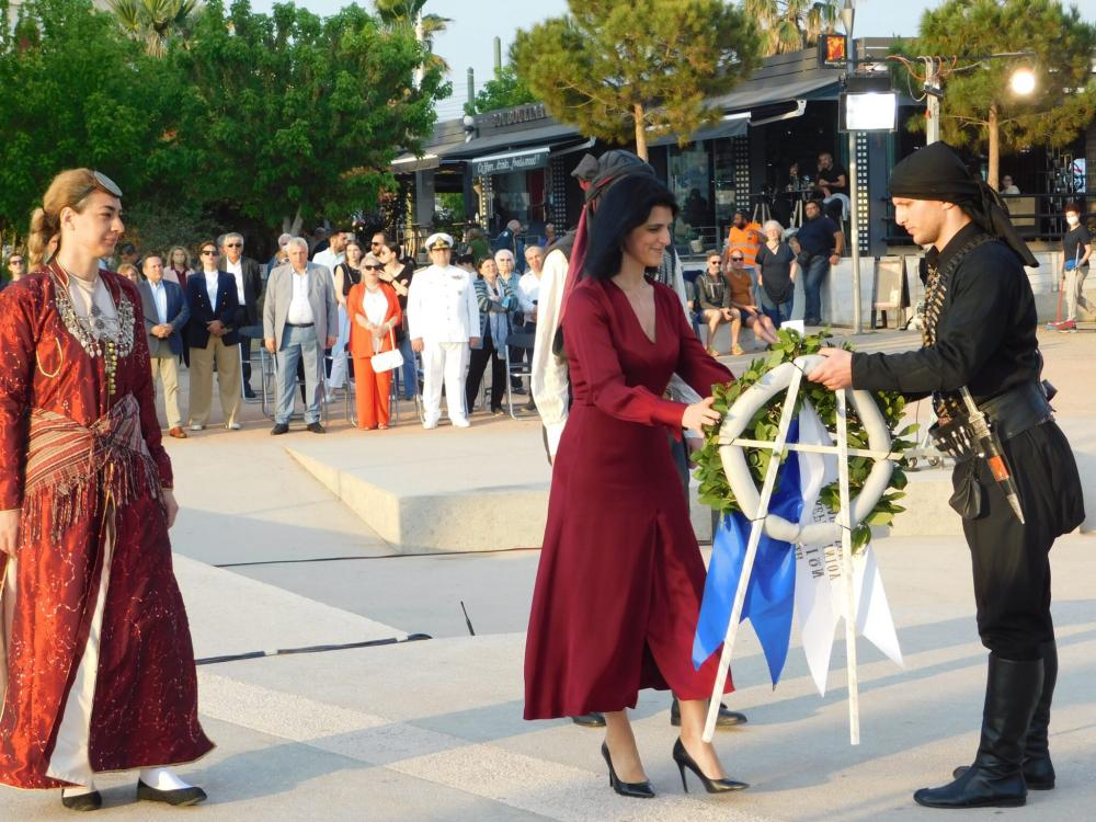 Ακολούθησε κατάθεση στεφάνων: από τον Αντιδήμαρχο Προγραμματισμού και Ανάπτυξης κ. Δημήτριο Καρύδη εκ μέρους του Δημάρχου Πειραιά κ. Ιωάννη Μώραλη, από την Αντιπεριφερειάρχη Πειραιά κα. Σταυρούλα Αντωνάκου, από την κα. Φωτεινή Υψηλάντη εκ μέρους του δωρητή του Μνημείου Γενοκτονίας κ. Ευάγγελου Μαρινάκη, από τον Σύνδεσμο Ελλήνων Βατραχανθρώπων, ο πρόεδρος κ. Παλατιανός Αλέξανδρος αρχιπλοίαρχος (ε.α.) και από την Ένωση Ποντίων Πειραιώς – Κερατσινίου – Δραπετσώνας, η γραμματέας κα. Χαφουσίδου Χριστίνα. Την κατάθεση έκλεισε ο πρόεδρος της Παμποντιακής Ομοσπονδίας Ελλάδος κ. Γεώργιος Βαρυθυμιάδης.