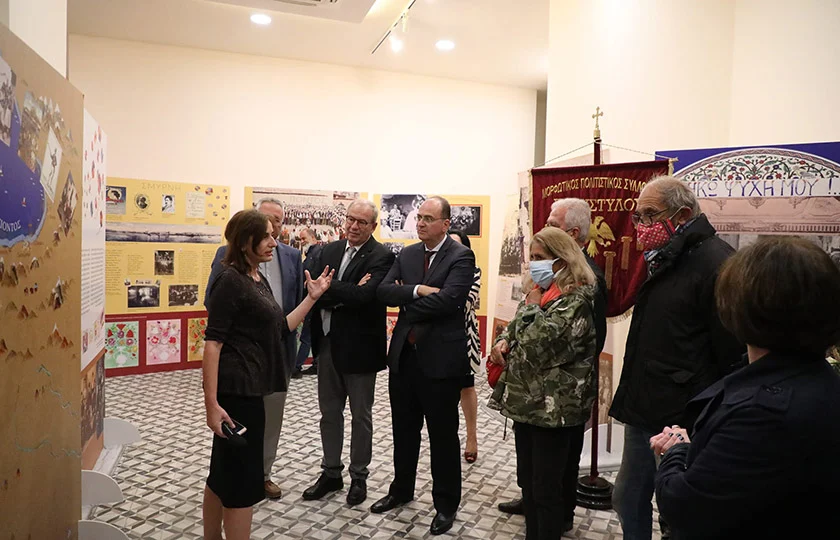 Στην ομιλία του ο καθηγητής Ευάνθης Χατζηβασιλείου, γενικός γραμματέας του Ιδρύματος της Βουλής, τόνισε μεταξύ άλλων ότι «η λογική της έκθεσης δεν είναι να θυμηθούμε το μεγαλύτερο τραύμα που υπήρξε στα 3.500 χρόνια της ιστορίας του πολιτισμού μας, αλλά να τιμήσουμε τα σύμβολα και την ταυτότητα των ανθρώπων μας».